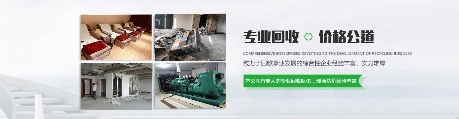 03上门收购服务提供上门收购服务整厂、商场、KTV、酒吧、 宾馆、洗浴中心等拆除回收。公司业务现已经遍布全国。 我们始终坚持“以诚合作,以信经营,价高同行,变废为宝”服务于广大企事业单位。04服务优势线上预约整厂、商场、KTV、酒吧、 宾馆、洗浴中心等拆除回收。公司业务现已经遍布全国。 我们始终坚持“以诚合作,以信经营,价高同行,变废为宝”服务于广大企事业单位。